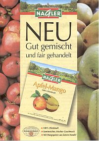 Die Mangos für diesen Direktsaft werden von philippinischen Kleinbauern angebaut und mit Hilfe der Organisation PREDA an Verarbeitungsfirmen vor Ort verkauft. Im Gegensatz zu den Dumpingpreisen auf dem Weltmarkt werden faire Erzeugerpreise bezahlt. Darüber hinaus erhalten die Bauern von PREDA Beratung in naturnahen Anbaumethoden und sichern so die charakteristische Tier– und Pflanzenwelt ihrer Heimat. Die Kelterei Nagler hat sich verpflichtet das Mangopüree für den Apfel-Mango-Saft ausschließlich aus diesem PREDA-Projekt zu kaufen und nicht auf deutlich günstigeres Püree aus Weltmarktbeständen zurückzugreifen. Dadurch trägt die Kelterei dazu bei, dass dieses - aus ethischer und ökologischer Sicht - sinnvolle Projekt fortgeführt werden kann und nimmt damit die unternehmerische Verantwortung für Mensch und Natur ernst.