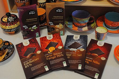 Wenn man die Fair-Idee von dieser Seite betrachtet, dann leisten die ehrenamtlichen Mitarbeiterinnen und ihr männlicher Kollege - nicht nur am Dionysisonntag - einen wesentlichen Beitrag zu einem Problem, dass uns nicht gleichgültig sein darf. Beim Einkauf im Ein-Welt-Laden in der Frontenhausener Straße hat es dann Mann oder Frau selbst in der Hand, zu ein bisschen mehr weltweiter Gerechtigkeit beizutragen. Die Ladendamen unterhalten sich gern mit ihren Kunden. Sie beraten und bieten am Sonntag zusätzlich kleine Kostproben von gesunder dunkler Schokolade an, die laut "Focus" die körpereigene Abwehr stärkt und durch das Serotoninbildende Tryptophan glücklich macht.