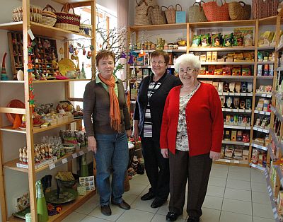 Gemeinsam mit einem männlichen Kollegen sind etwa die Hälfte von den Damen seit 1998, also von Anfang an im Laden tätig. Gefragt nach der Beliebtheitsskala ihrer Produkte, erfährt man, das besonders oft Lebensmittel gekauft werden - angeführt von Kaffee, Tee und Schokolade.